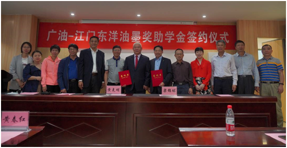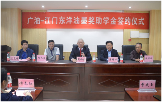梁锦球总经理1983年毕业于广东石油化工学院有机化工专业,参与筹划成立的江门东洋油墨有限公司,该公司已成长为中国食品包装行业的知名企业。2019年初江门东洋与材料科学与工程学院签订了科研项目合作合同,促使学校的学术研究成果运用转化为企业生产力。此次,为了鼓励更多广油学子奋发向上、努力成长,江门东洋还在化工类的三个专业里设立“东洋油墨专项奖助学金”,希望以此为契机,让更多的同学们认识和关注江门东洋。
