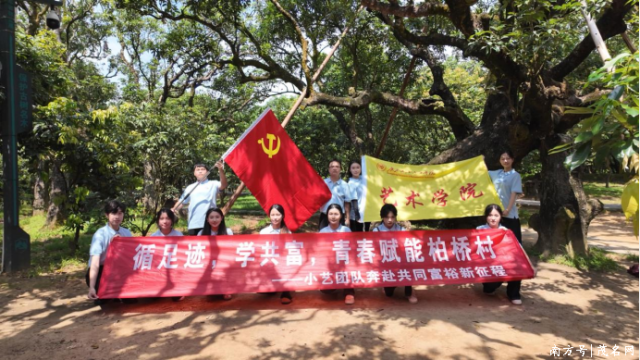 7月13-14日,广东石油化工学院艺术学院“小艺团队”十余名学生积极投身广东省教育厅“研习南粤”2025年大学生暑期教育实践活动,奔赴茂名高州市根子镇开展实地研学。本次实践聚焦“共同富裕”主题路线。