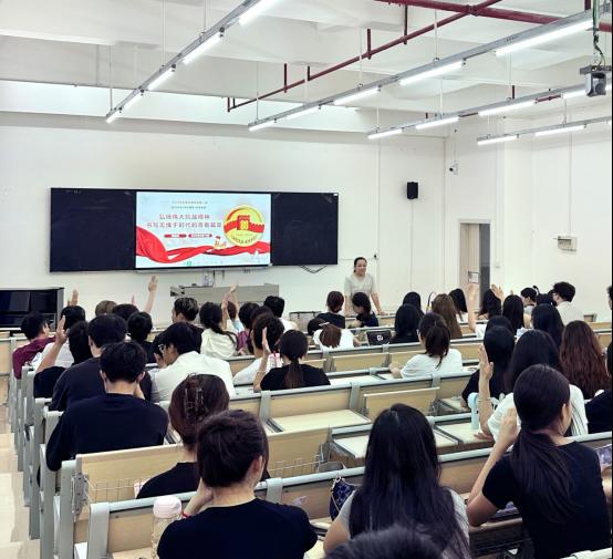 郑凌云首先阐述了伟大抗战精神的内涵以及形成过程,她指出,伟大抗战精神是中国人民在抗日战争中凝聚起的强大精神力量,是中华民族宝贵的精神财富,是当代青年成长成才不可或缺的精神支柱,鼓励青年学子深植家国情怀,将个人理想与国家发展紧密结合起来,担当时代责任,以实干贡献青春力量。