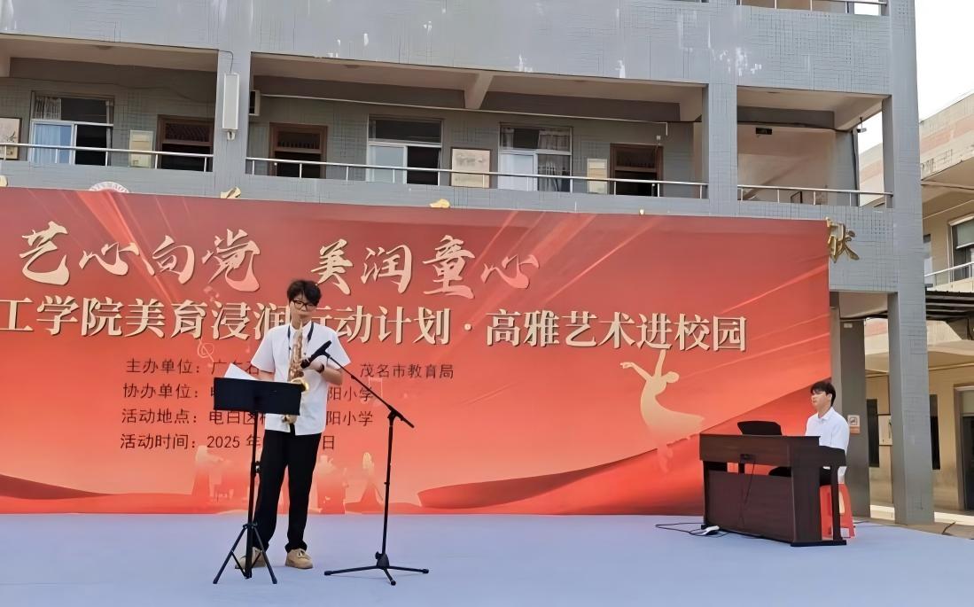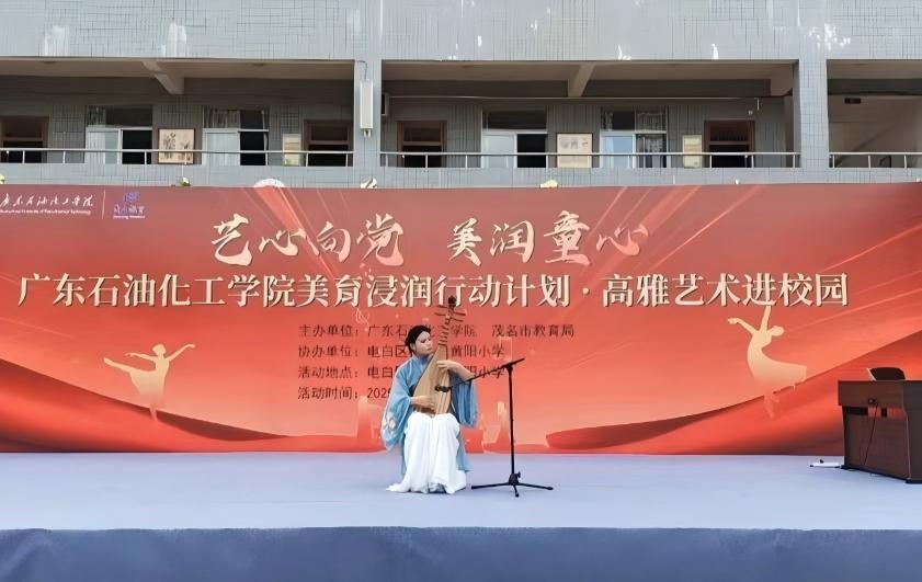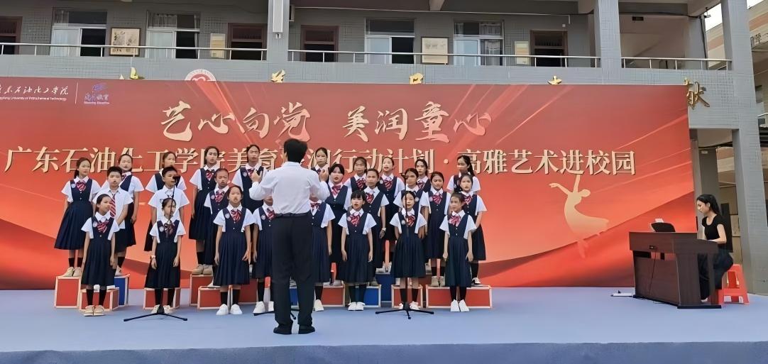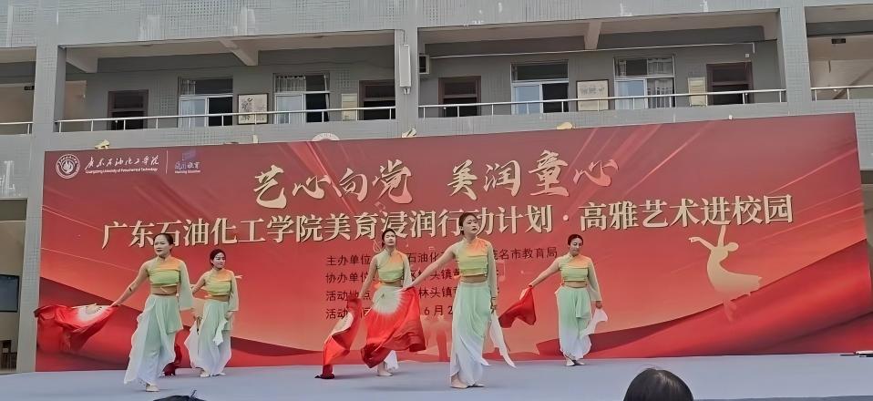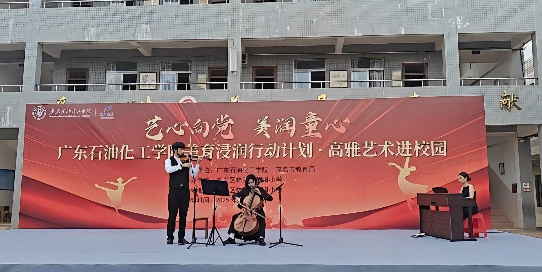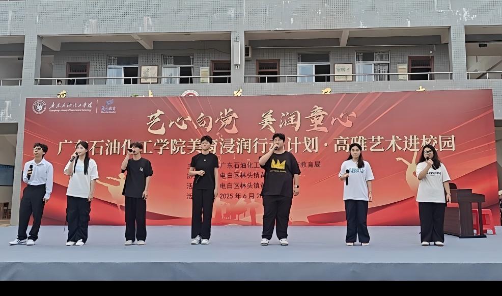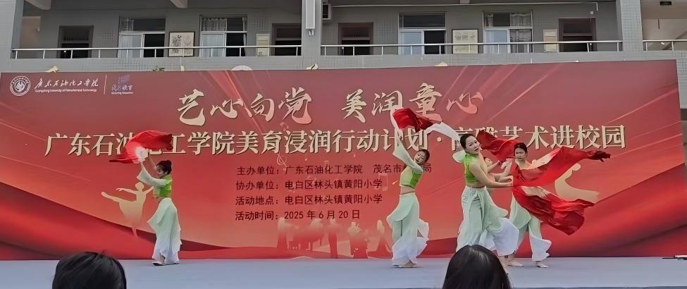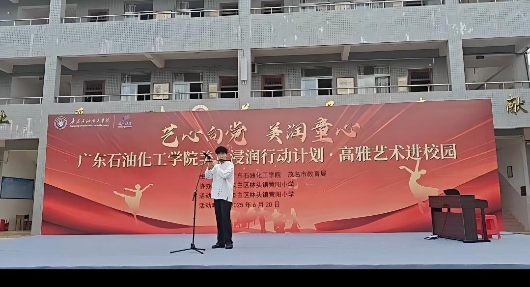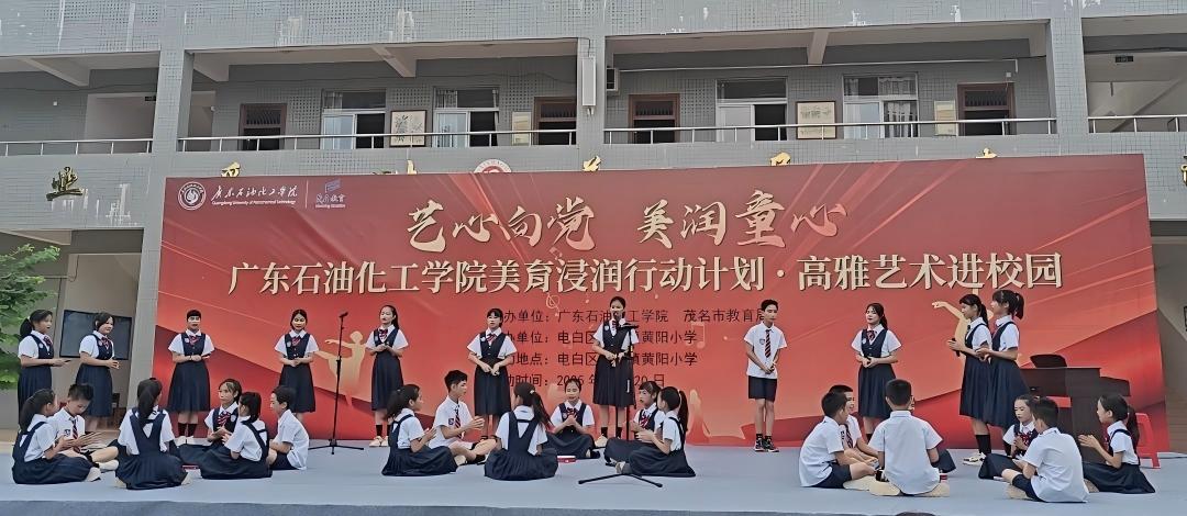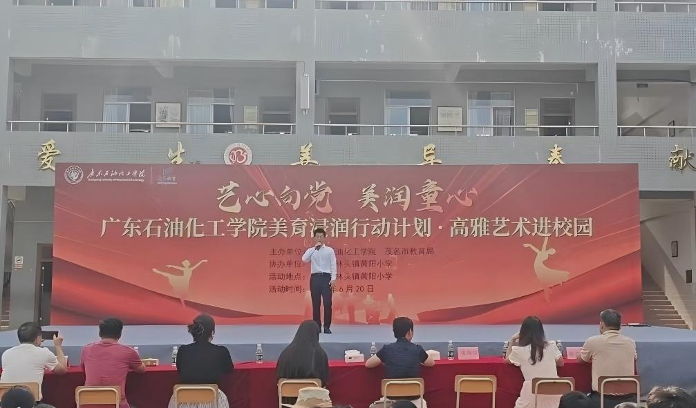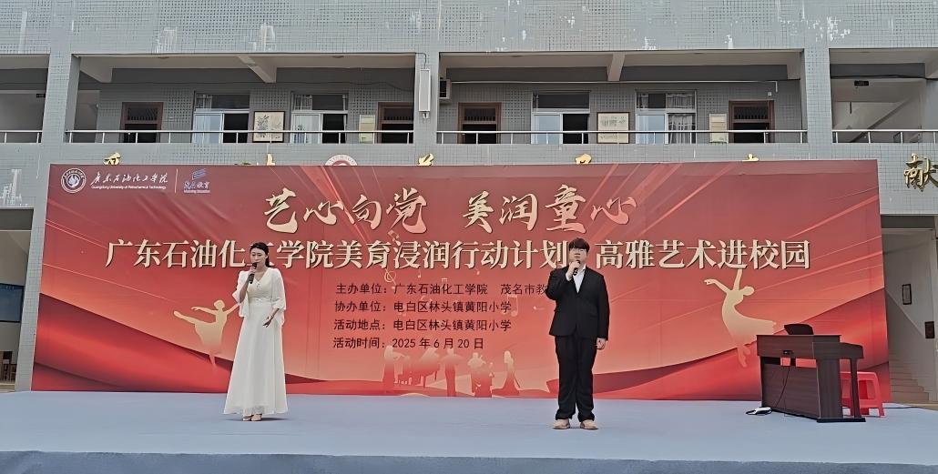 2025年6月20日,由广东石油化工学院、茂名市教育局联合主办,黄阳小学协办的“艺心向党,美润童心”高雅艺术进校园活动,在电白区林头镇黄阳小学成功举行。本次活动是广东石油化工学院“美育浸润行动计划”的生动实践,旨在将优质高校美育资源精准输送至乡村基础教育一线,以艺术之美启迪童心、涵养心灵。