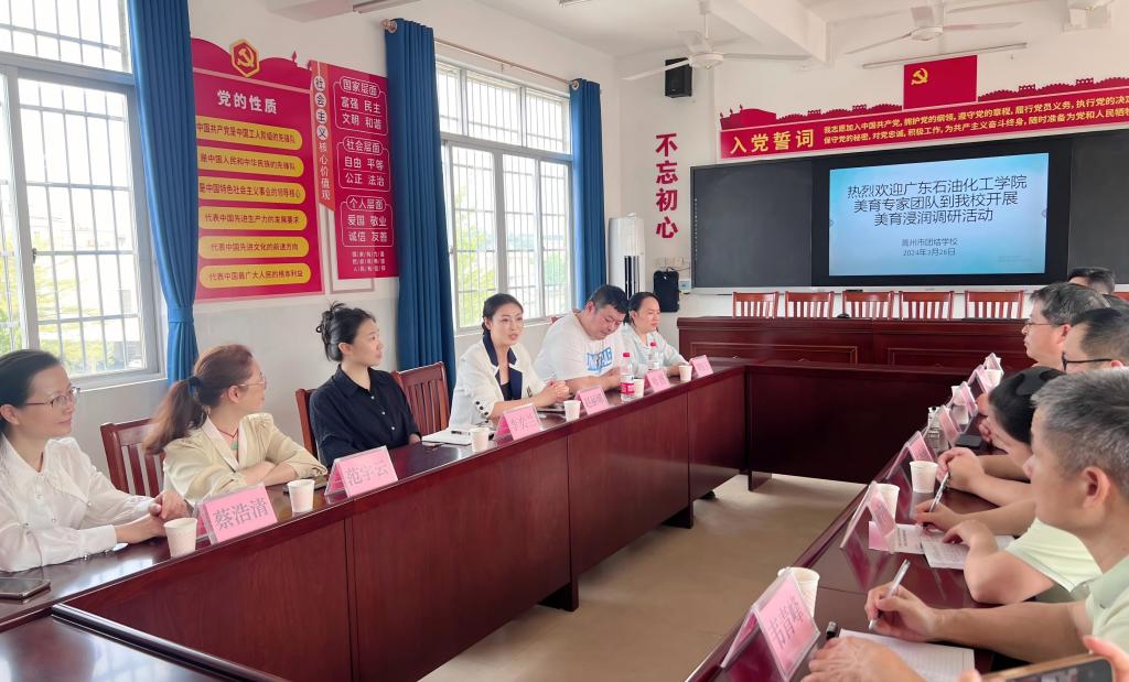 2024年3月26日,为进一步推进广东石油化工学院美育浸润行动计划,展开精准对口帮扶,广东石油化工学院美育浸润行动计划项目负责人、艺术学院副院长赵丽娜一行赴高州市宝光街道调研,茂名市教育局体卫艺科周晓玉科员参加。