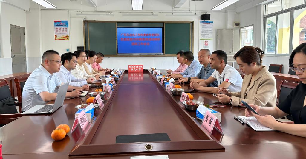广东石油化工学院美育浸润团队了解各校目前的美育师资、课程开展、校园文化建设等情况,参观了各学校的音乐、美术功能教室。座谈会上,广东省教育厅体卫艺处艺术专干杨清辉指出,为了贯彻中共中央办公厅、国务院办公厅《关于全面加强和改进新时代学校美育工作的意⻅》以及《教育部关于全面实施学校美育浸润行动的通知》精神,进一步推进美育浸润行动计划工作的实施,美育浸润行动计划应因地制宜推进县域内优秀美育教师流动授课、优质美育课堂资源共享,促进学校美育优质均衡发展,建立高校与中小学、城乡学校之间“手拉手”相互学习交流和帮扶机制,探索高校艺术社团和乡村学校双向交流机制。