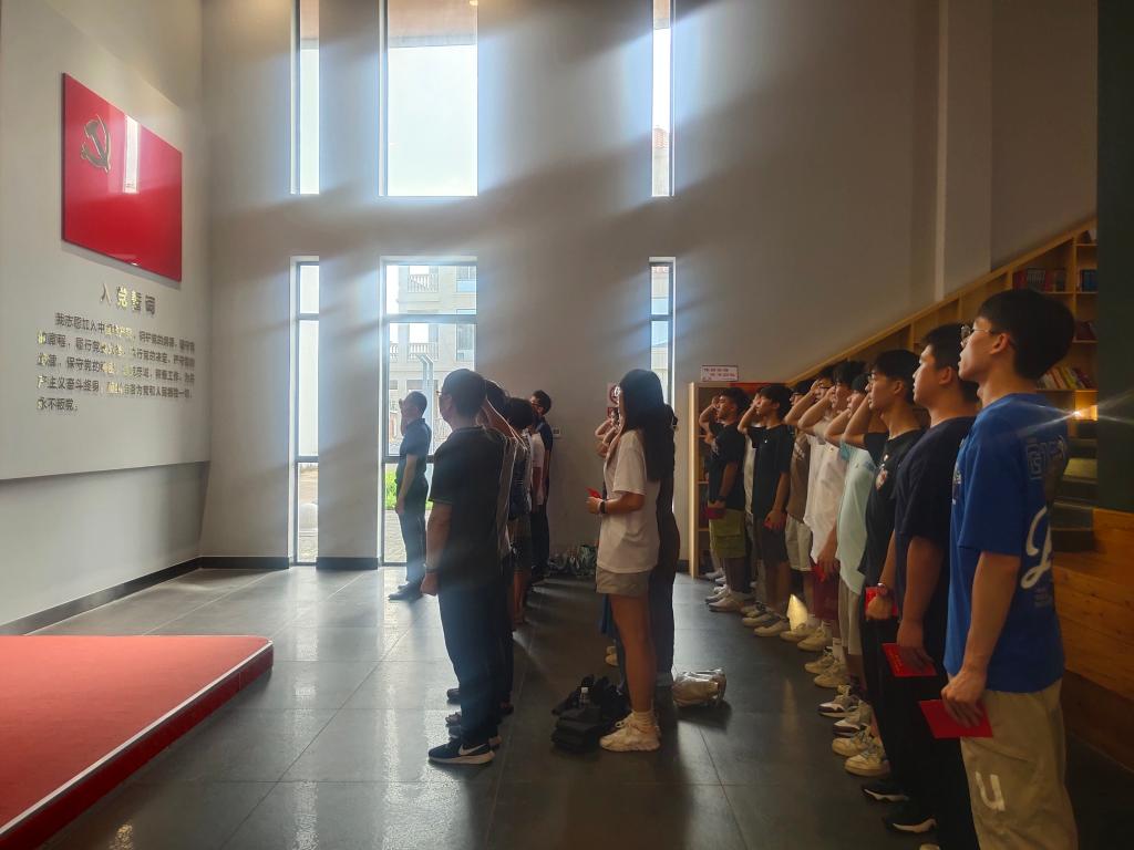 参观结束后,学院院长张磊给新发展党员颁发党徽和党费证,学院党委书记李添带领全体党员进行入党宣誓,全体党员面向党旗、举起右拳,庄严宣誓。铿锵有力的宣誓声,真挚热烈的眼神,展现出党员对加入中国共产党的决心。