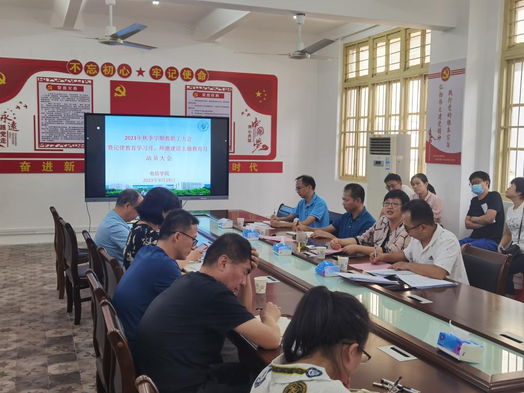 9月19日下午,电子信息工程学院在官渡校区中专楼217会议室召开2023年秋季学期教职工大会暨纪律教育学习月和师德建设主题教育月动员大会。学院全体教职工参加会议,会议由学院院长张磊主持。
