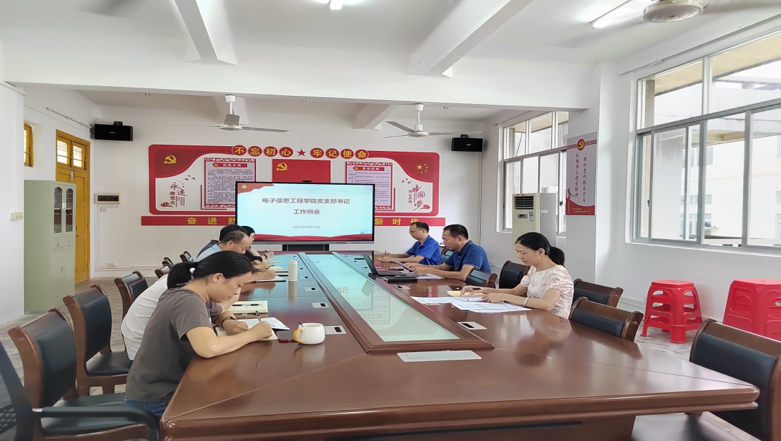 2024年9月14日上午,电子信息工程学院党委在中专楼217室召开党支部书记工作例会,会议由学院党委书记李添主持,学院党委副书记、组织员、全体党支部书记参加了会议。