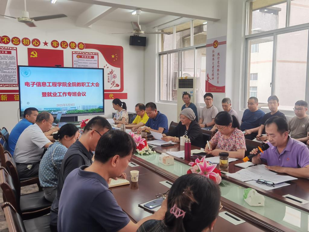 5月9日下午,电子信息工程学院于中专楼217会议室召开教职工大会暨就业工作专班会议。会议由学院院长张磊主持,全体教职工参会。