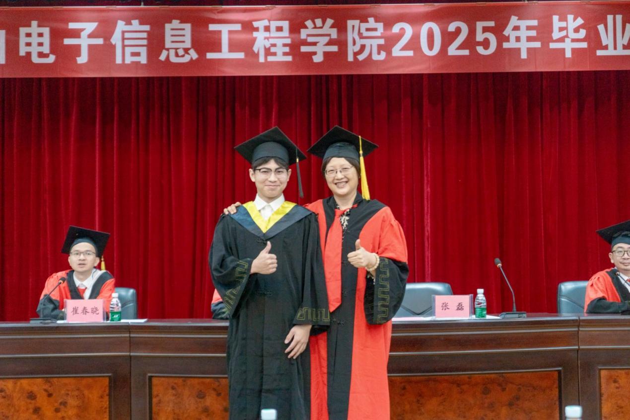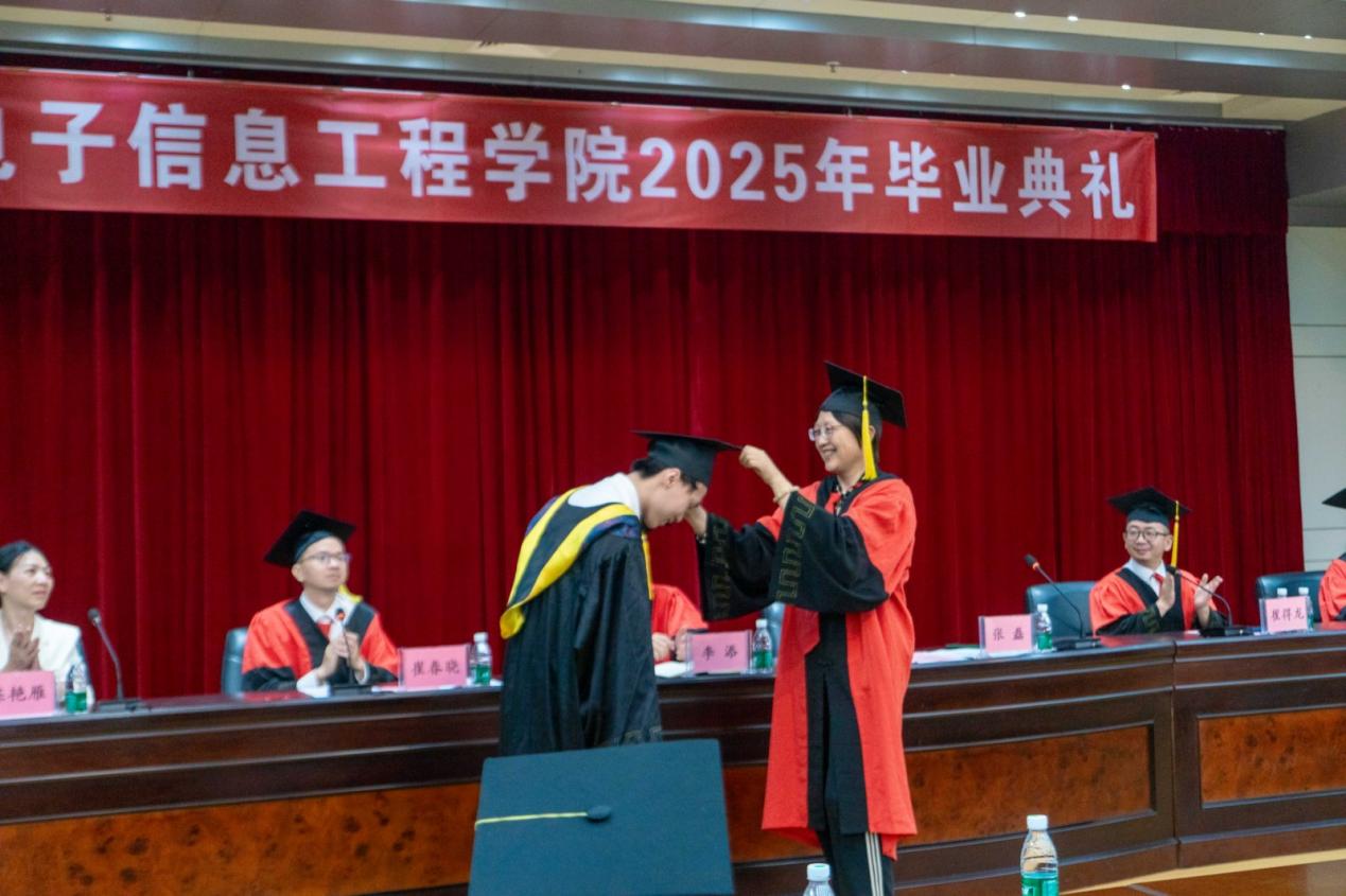 5月18日上午,电子信息工程学院在图书馆学术报告一厅举行2025届本科生毕业典礼。学院领导、各系(中心)主任、全体辅导员、2021级全体班主任,毕业生代表和家长代表,以及非毕业生代表和学生干部代表等参加了毕业典礼。党委副书记崔春晓主持毕业典礼。