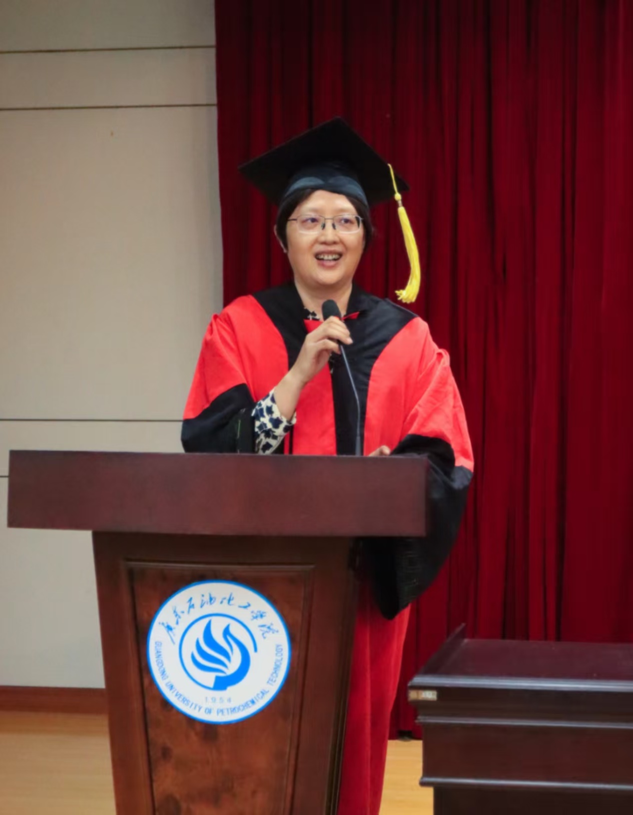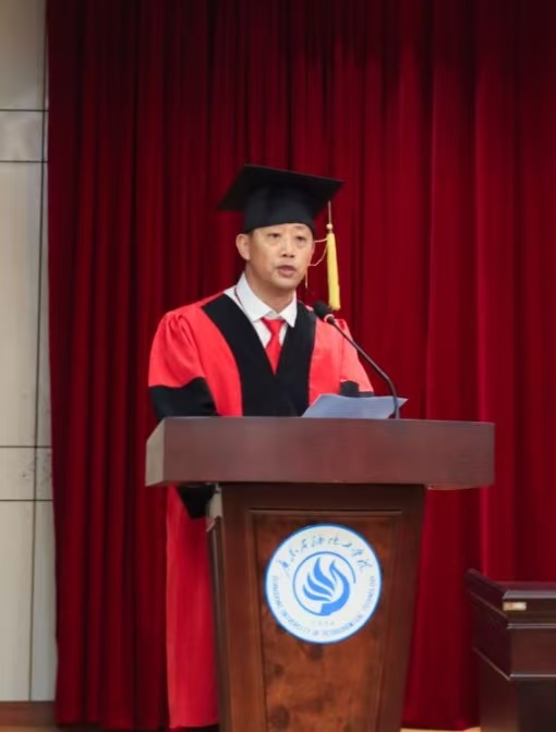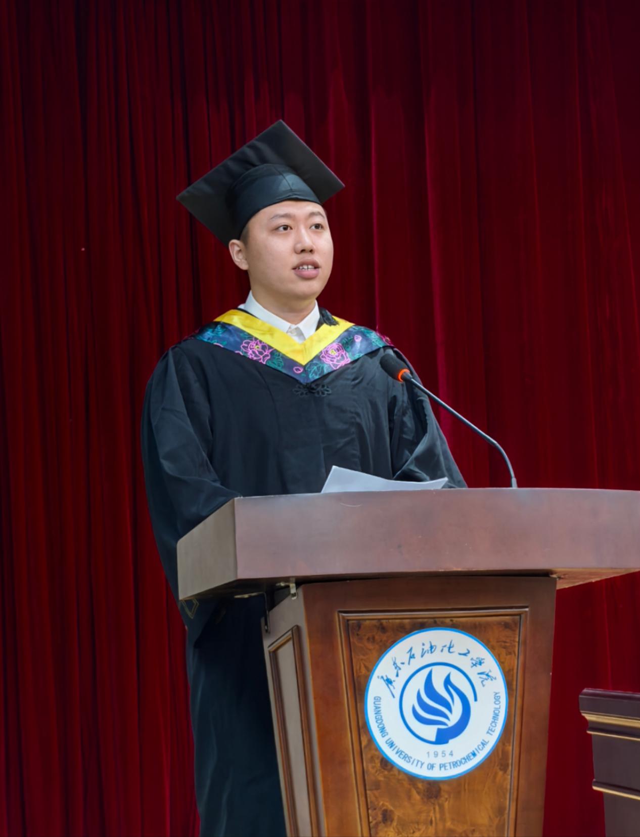 院长张磊在毕业典礼致辞中与大家一起回顾同学们在广油度过的青春岁月。在毕业生即将启程远航之际,张磊叮嘱学生:一是要保持平常心,正确地认识自己,调适心态,在大格局中找准人生定位。二是要持续学习,只要保持终身学习的热忱并持之以恒,终将成为人生的赢家。三是要学会感恩。感谢父母默默无闻的付出,感恩师长的谆谆教诲,感谢同学们的温暖陪伴。张磊感谢同学们将人生最美的四年镌刻在广油,祝愿这四年时光沉淀成同学们记忆中永不褪色的风景。期待同学们在各自岗位上践行校训精神,“当有一天你们以卓越成就回馈社会时,母校必将以你们为荣!”