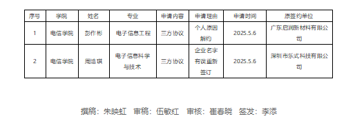 关于申请作废三方协议的人员名单公示(更新至2025.5.6)