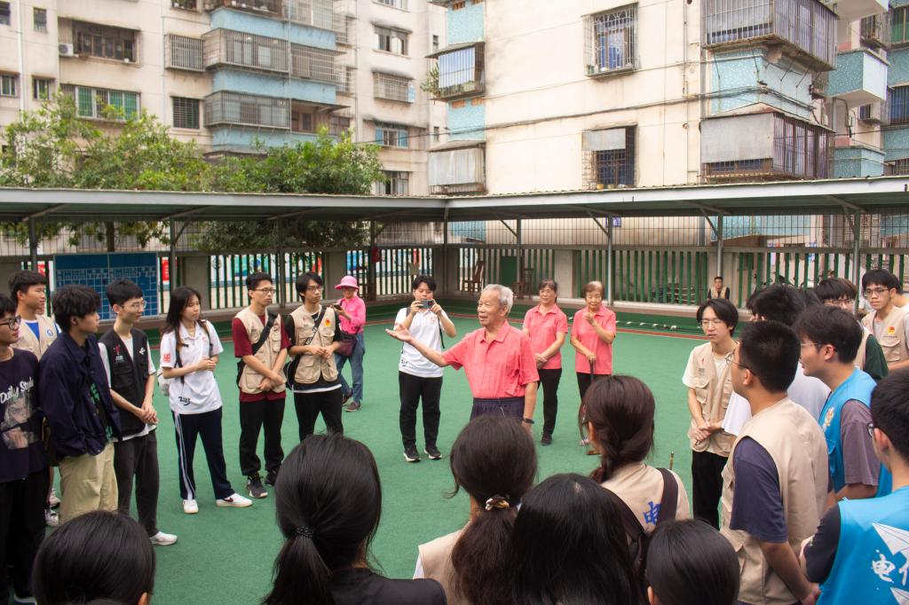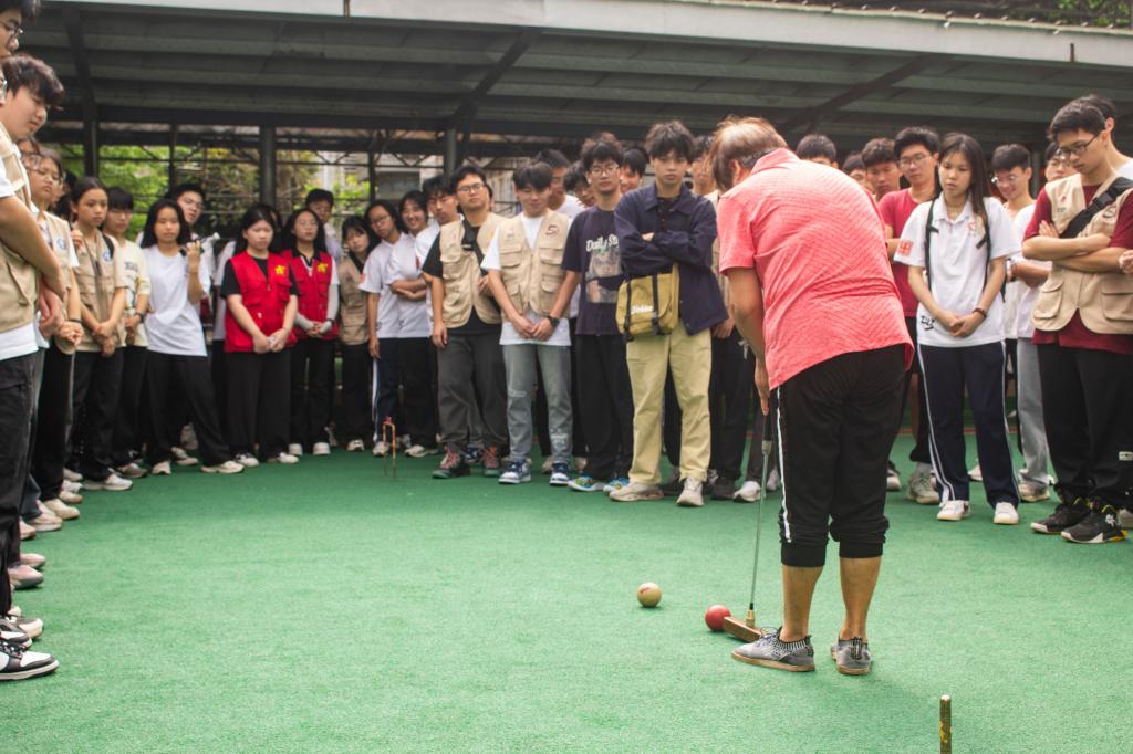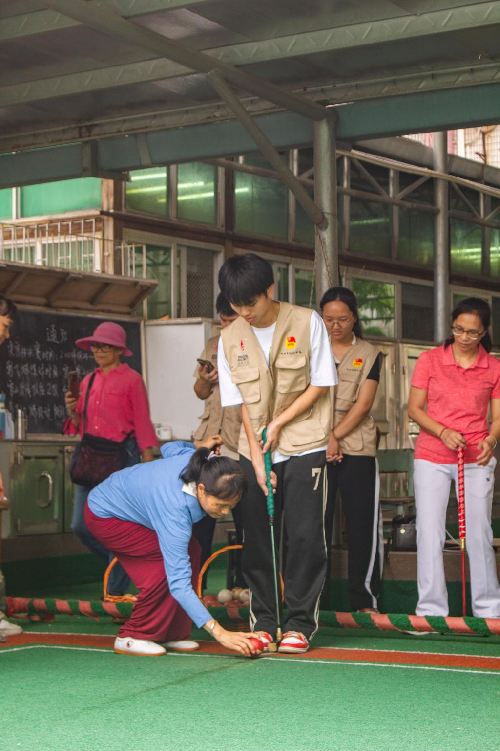 全体青马成员参与体验门球活动。社区居民们热情洋溢,纷纷向青马学员们传授门球技艺。他们耐心细致地讲解门球的起源、比赛规则及技巧,在逐渐掌握了基本的击球方法后,青马成员们与社区居民一同踏上球场进行比赛演练,在一球一杆的互动下,共同体验着打门球的乐趣。在比赛的间隙,青马学员志愿者们与社区老人们聊天,耐心倾听长者们的人生故事和经历,了解老人们的近况,在一片欢声笑语中,结束了本次活动。