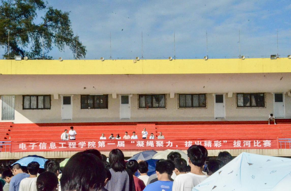 为庆祝广油建校70周年,积极营造喜迎校庆的热烈氛围,增强同学们的凝聚力与归属感,激发学生拼搏进取的奋斗精神,电信学院于10月19日在官渡校区田径运动场顺利举行了第一届“凝‘绳’聚力,‘拔’出精彩”大学生拔河比赛。学校关工委常务副主任、特邀党建组织员吴永有,学院党委副书记崔春晓、全体辅导员、班主任和学生1000多人参加此次活动。