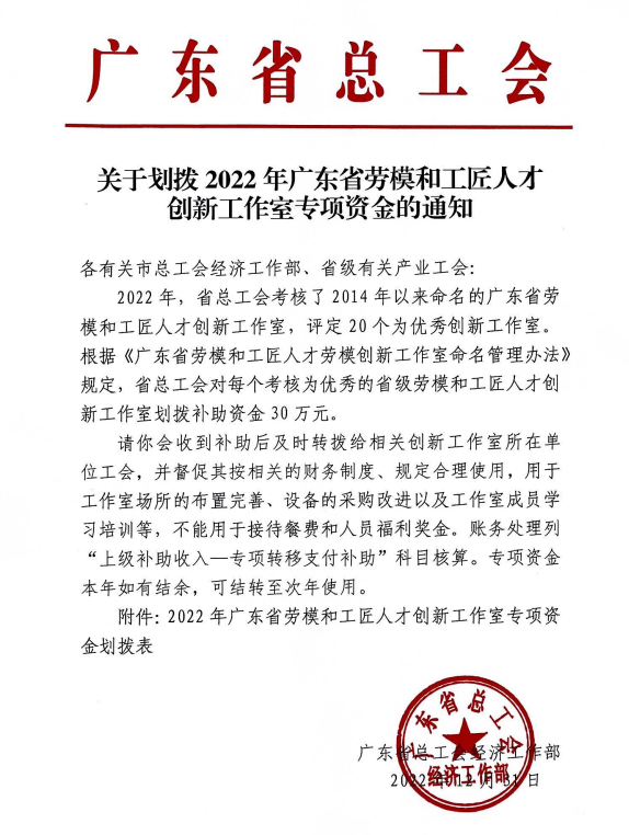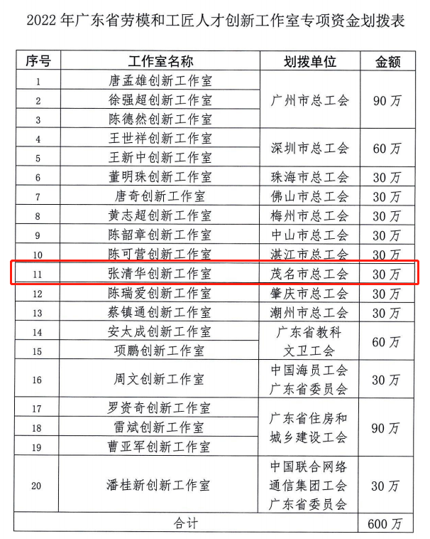 近日,广东省总工会通报了2014年以来命名的广东省劳模和工匠人才创新工作室考核结果,我校张清华创新工作室被评定为优秀等次,也是茂名市唯一一个被评为优秀的省级劳模和工匠人才创新工作室,并获得2022年广东省劳模和工匠人才创新工作室专项资金支持。