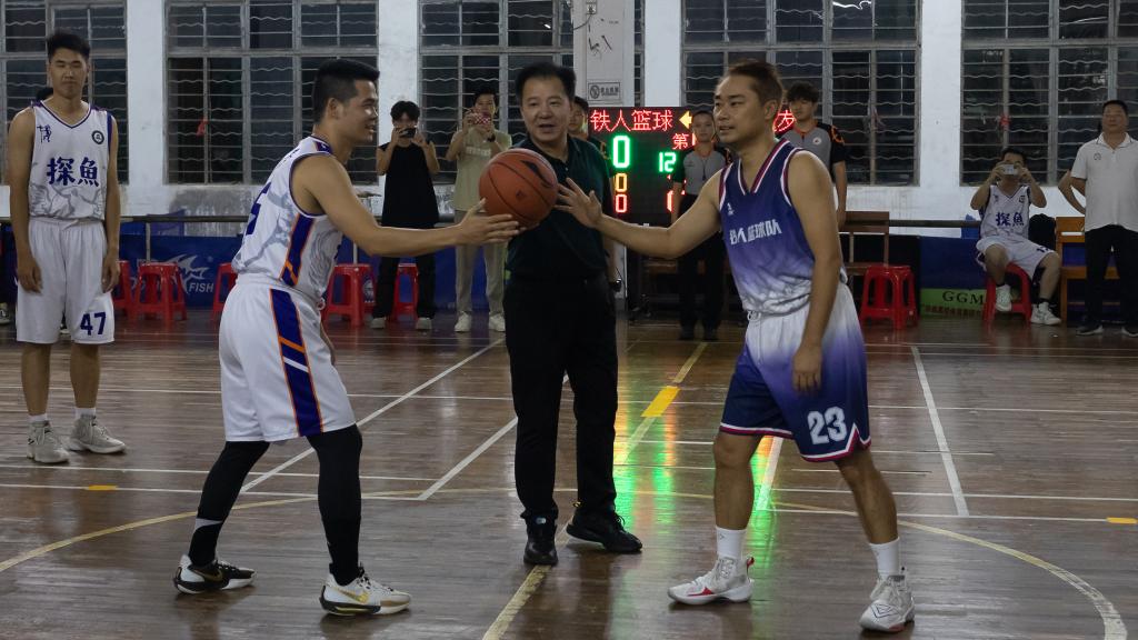 比赛伊始,随着裁判的一声哨响,比赛瞬间点燃了全场的热情。双方队员均迅速进入状态。暨南大学茂名校友会的队员们以老练的球风和默契的配合,迅速掌握了场上的主动权,队员们的配合默契,无论是发球、接球、传球还是投篮,每个环节都衔接得有条不紊,让现场观众为之沸腾。而广东石油化工学院教工篮协的铁人篮球队则以年轻的活力作为回应,他们的每一次防守都显得那么坚韧,精准的投篮、犀利的突破,每一次反击都充满了速度与激情。