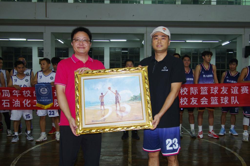 在开幕式上,校园十大歌手为观众们带来了一场视听盛宴,歌曲《逆光》、《海阔天空》、《不再犹豫》唱出了青年学子奋斗之姿和昂扬之态。参赛双方互赠了纪念礼品,暨南大学茂名校友会送上一个寓意广油暨大友谊深厚而坚固的精美油画,广东石油化工学院教工篮协回赠了一个王进喜铁人铜像,期望双方队员传承“有条件要上,没条件创造条件也要上的”铁人精神,赛出风格,赛出水平。