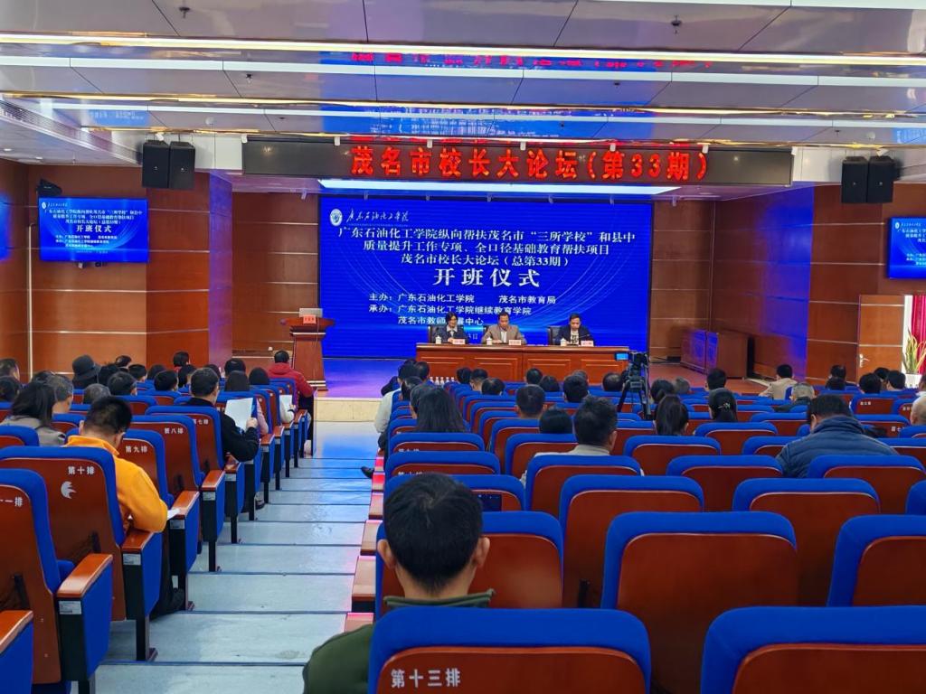 4月3日上午,广东石油化工学院纵向帮扶茂名市“三所学校”和县中质量提升工作专项、全口径基础教育帮扶项目暨茂名市校长大论坛(总第33期)在茂名市教育局副楼二楼报告厅顺利举行。茂名市教育局干部职工、全茂名市各学校党组织书记、校(园)长约4000人线上线下参与开班仪式。