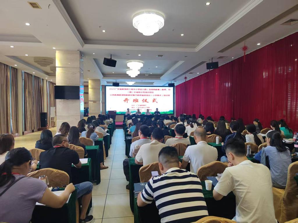 7月15日上午,2025年广东省义务教育新课程新教材骨干教师省级培训(小学美术)培训班在茂名市文汇酒店举行开班仪式。广东石油化工学院继续教育学院院长张长明、广东省教育研究院原艺体科主任周凤甫、东莞市莞城中心小学校长邹官民及全省各地市粤东西北100位小学美术骨干教师参加开班仪式。仪式由广东石油化工学院继续教育学院培训中心主任石佳奇主持。
