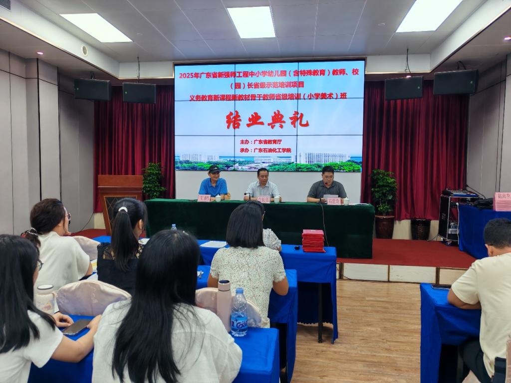 2025年7月20日上午,2025年广东省义务教育新课程新教材骨干教师省级培训(小学美术)结业典礼顺利举行。广东石油化工学院继续教育学院院长张长明、广东省特级教师王鹏及广东省各地市100位小学美术骨干教师参加。 仪式由继续教育学院培训中心副主任石佳奇主持。