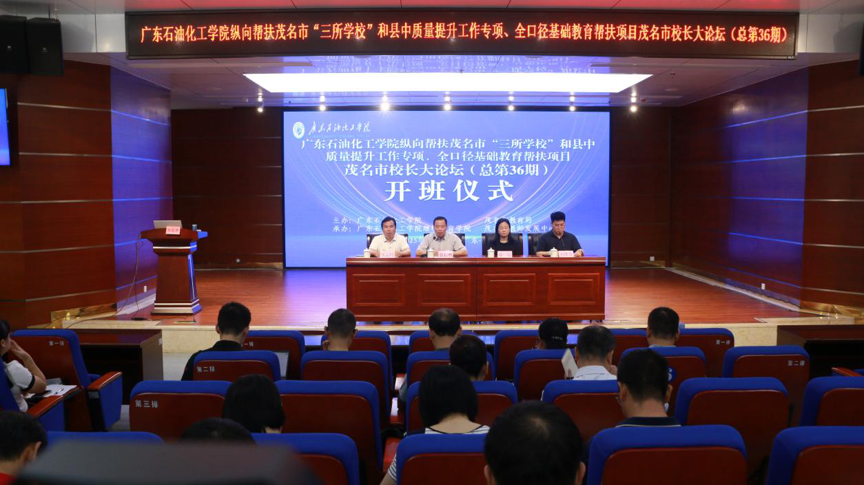 11月9日,由广东石油化工学院和茂名市教育局共同主办的纵向帮扶茂名市“三所学校”和县中质量提升工作专项、全口径基础教育帮扶项目暨茂名市校长大论坛(总第36期)之基础教育课程教学改革深化行动专题培训在茂名市教育局副楼二楼报告厅主会场及各级线上分会场同步举行。广东石油化工学院继续教育学院院长张长明、茂名市教师发展中心培训部主任伍云昌出席开班仪式并致辞,仪式由继续教育学院培训中心副主任石佳奇主持。