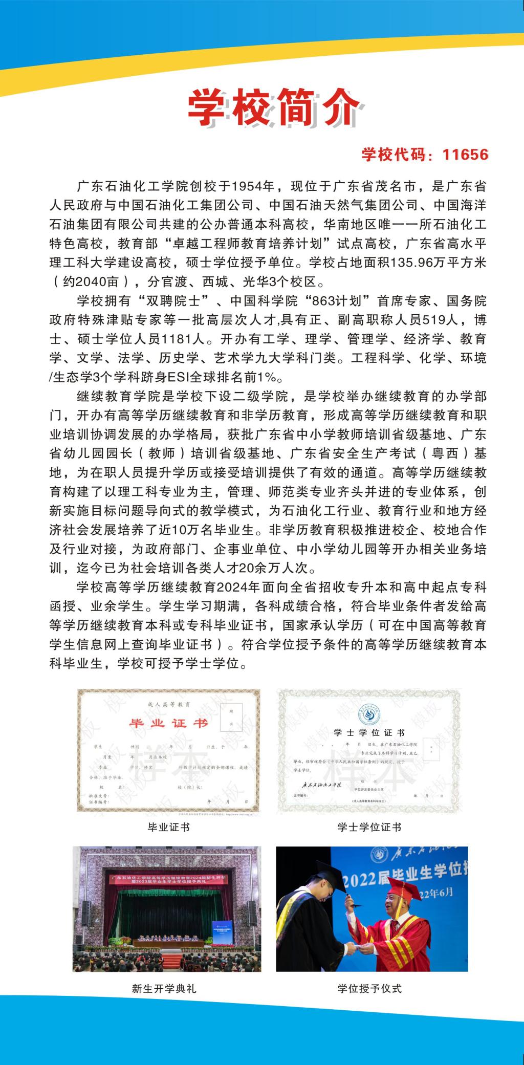 广东石油化工学院高等学历继续教育2024年招生简章