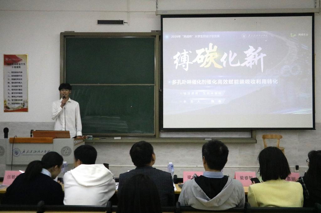 10月22日晚,化学学院在西城校区综合楼F104开展化学学院2026年“挑战杯”大学生创业计划竞赛院级选拔赛。学院党委副书记梁欢、程辉成副教授以及全体辅导员组成评审团,各参赛团队和观赛代表等100余名师生共同参与这场科技创新的盛会。