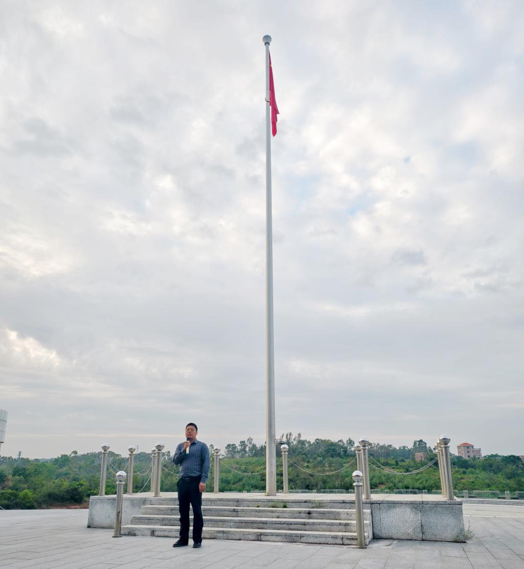 秋晨微凉,朝阳初升。为加强新生爱国主义教育,引导其树立远大理想,尽快适应大学生活,10月27日清晨,化学学院在明德广场举行升旗仪式。化学学院副教授兼应化25-1班班主任陈亚举博士、辅导员梁睿智及全体25级全体新生参加了升旗仪式。