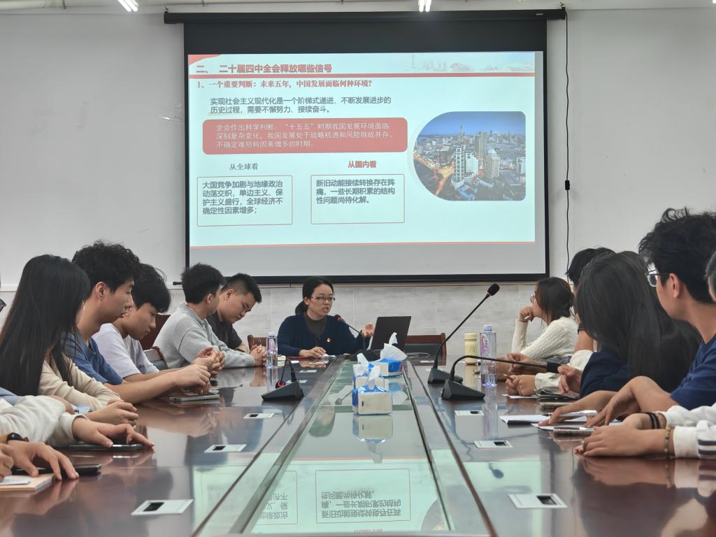 伍敏红首先围绕“学习党的二十届四中全会精神,在接续奋斗中谱写中国式现代化新篇章”主题讲授专题团课,结合实际工作引导成员领会全会精神,强调将学习成果转化为服务青年、服务大局的实际行动。