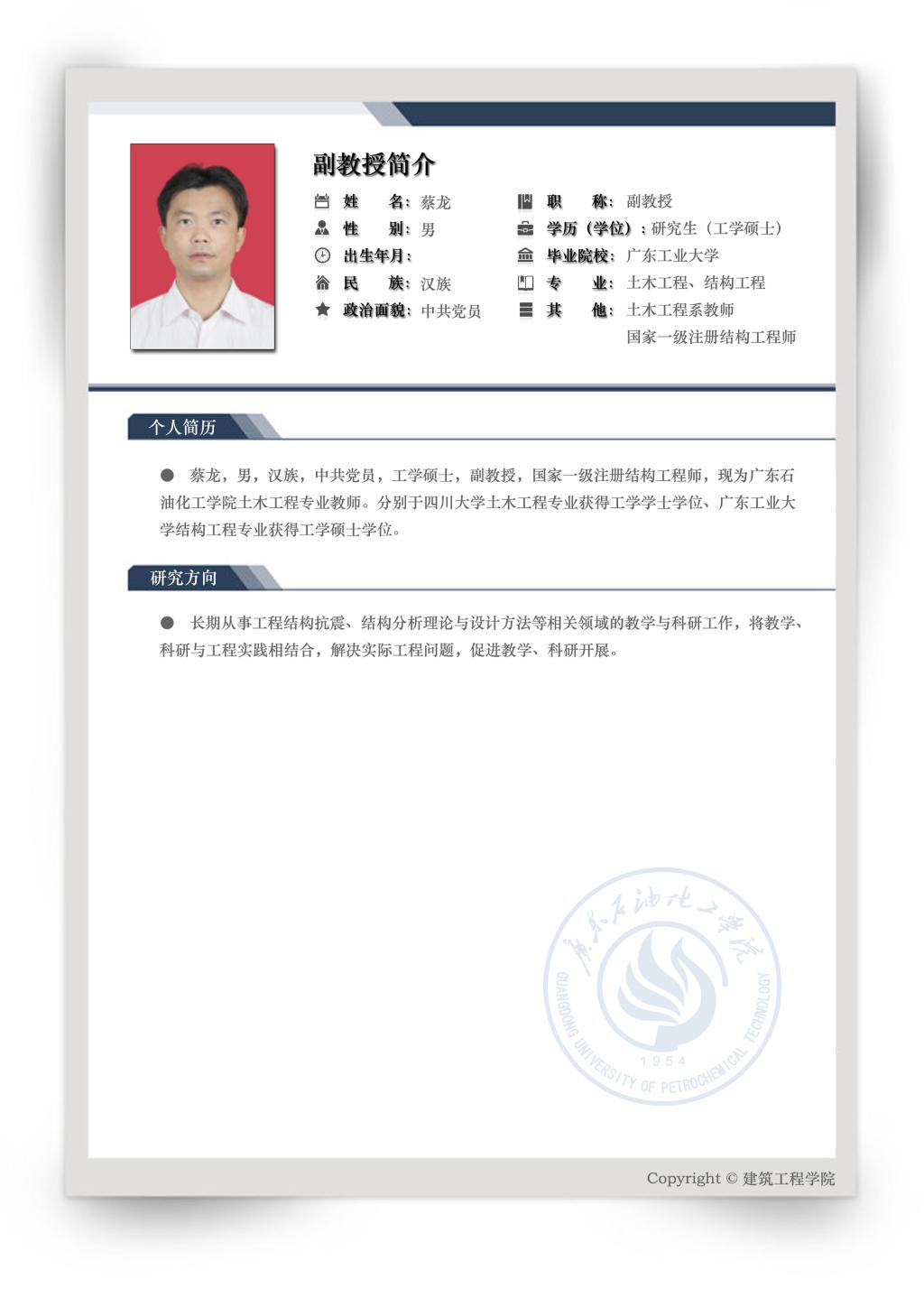 土木工程系蔡龙副教授简介