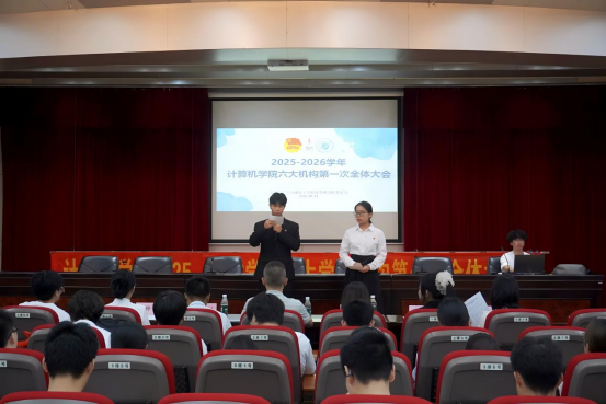 10月31日晚,计算机学院2025-2026学年六大学生机构第一次全体大会在官渡校区图书馆报告一厅举办。学院党委副书记李海健,学院辅导员老师及六大机构全体学生干部参加了会议。