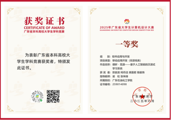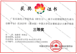 此前,在广东省大学生计算机设计大赛中,我校一举斩获一等奖1项、二等奖5项、三等奖8项。该赛事是由广东省教育厅主办的一项面向本科高校学生的学科竞赛。