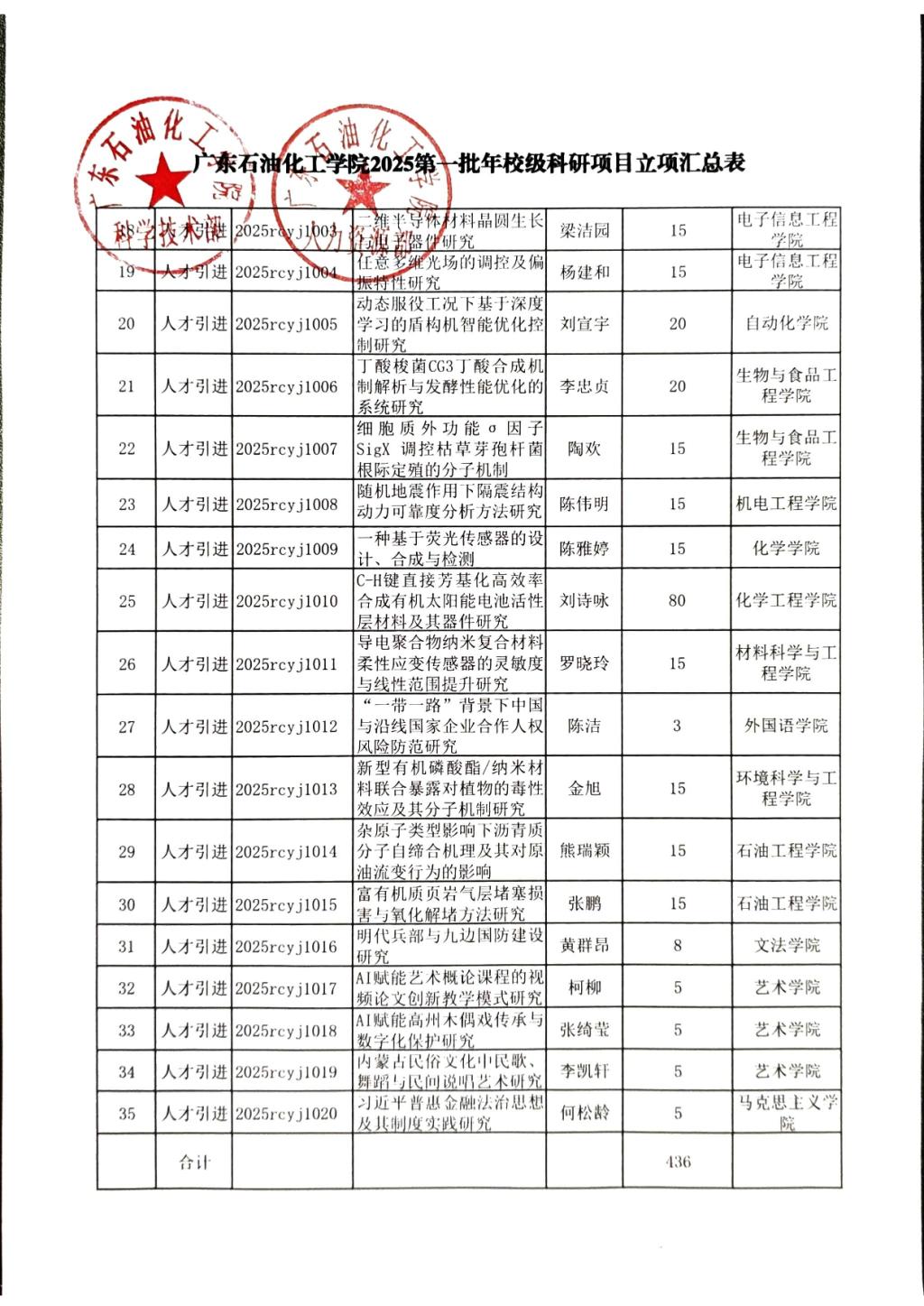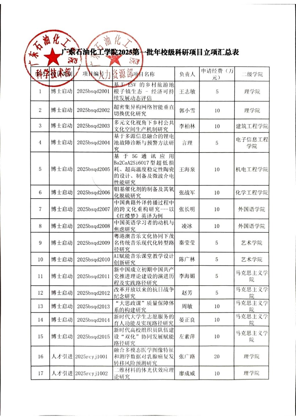 关于下达2025年第一批广东石油化工学院校级科研基金项目的通知.pdf