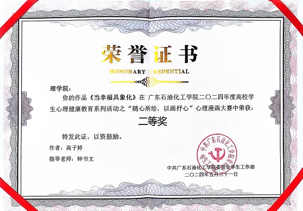数学(师)22-2黄欣彤《心理健康动画科普》获校级优秀奖