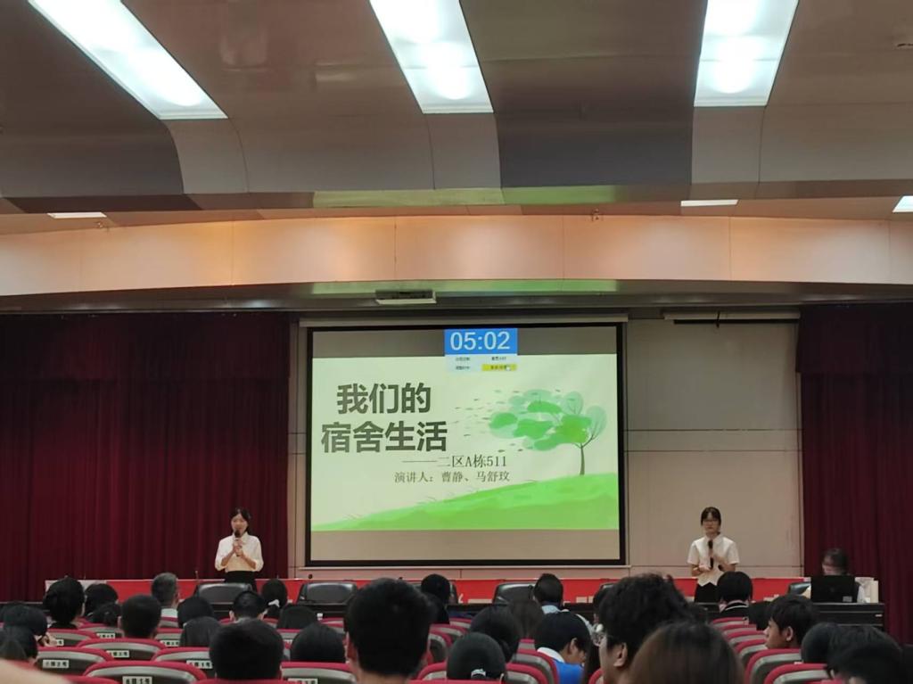 2025年6月11日晚,学校第一届“四好”文明宿舍评选活动决赛在图书馆学术报告厅一厅举行,各个参赛宿舍以演讲、视频等形式诠释了“环境卫生好、安全纪律好、学习风气好、人际关系好”四好内涵。经过激烈的角逐,理学院二A-511宿舍荣获“四好文明宿舍奖”。