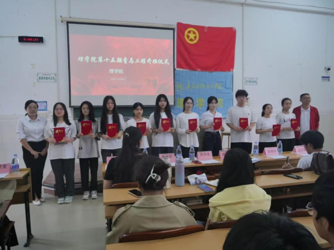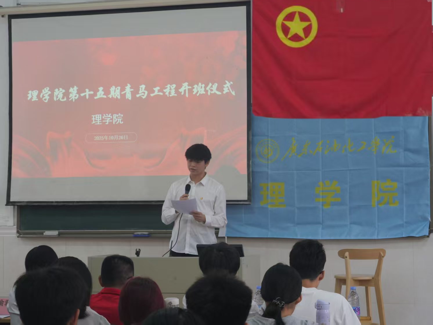 10月26日上午9:30,理学院在官渡校区二教B205教室举行广东石油化工学院理学院第十五期“青年马克思主义者培养工程”学习班开班仪式。学院党委副书记符清桓、团委书记庞伟连出席,六大机构主席团、青马全体学员参会。