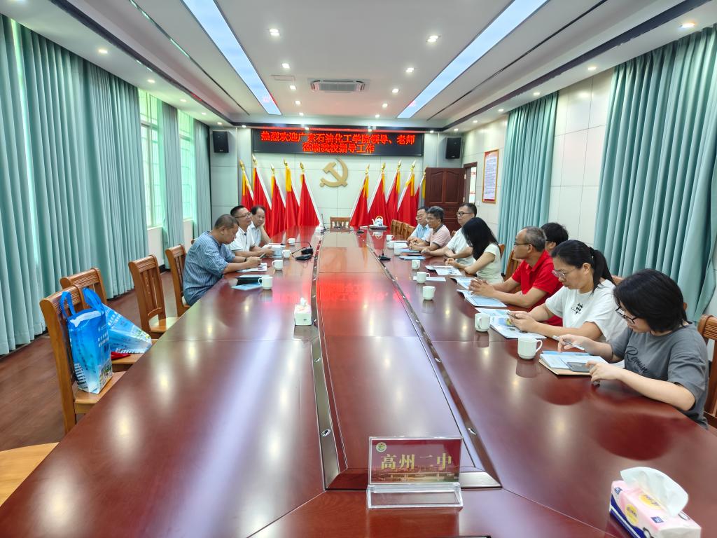 在各中学,符清桓一行与各高中学校负责人、高三级长及班主任等进行座谈交流。符清桓介绍学校近年来在茂名地区的招生录取情况以及学校的办学特色、人才培养等关键信息,并就普高招生的志愿填报与现场老师进行了交流。
