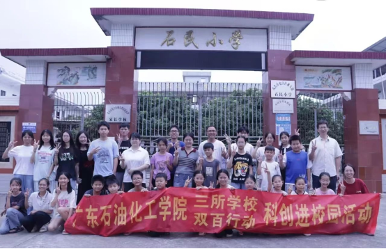 为响应国家和广东省人工智能素养提升政策,落实2025年“三所学校”帮扶行动,广东石油化工学院理学院教育技术系师生一行14人在姚佳花、蓝艺深老师带领下,于7月7日至11日赴电白林头石民小学开展为期五天的“STEM+AI”公益科普课程。石民小学廖激浪校长全程观摩并对教学效果给予充分肯定。