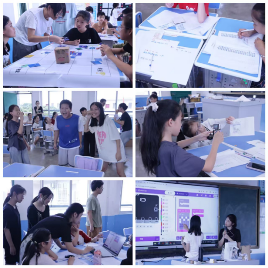 最后一天的课程,教学团队结合前面的学习内容,设计了“AI寻宝之旅”这一活动,活动包含机器人闯迷宫、芝麻开门、密码识图这3个关卡,要求同学们以小组形式参赛,从不同的关卡考验同学们对知识的掌握与团队协作能力,激发同学们独立思考和解决问题的能力。