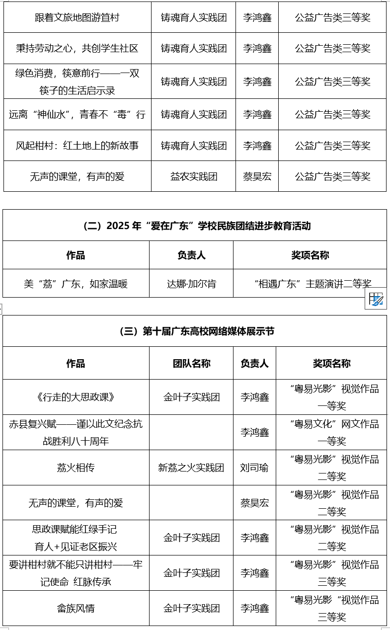 近日,广东石油化工学院2025年“育人+”大学生思想政治教育主题系列活动获奖名单正式公布。马克思主义学院师生凭借扎实的理论功底、创新的实践探索和饱满的青春热情,在各类活动中表现亮眼,共斩获42项荣誉,其中一等奖3项、二等奖12项、三等奖27项,充分彰显了我院思想政治教育的丰硕成果与育人实效。
