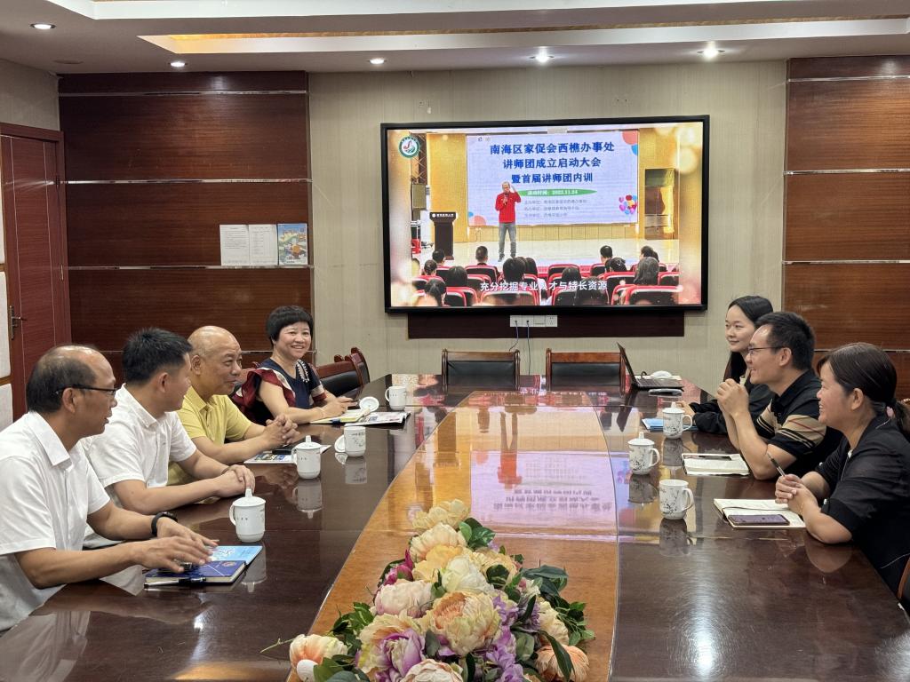 (调研组与佛山西樵镇教育发展中心领导及西樵实验学校交流现场)