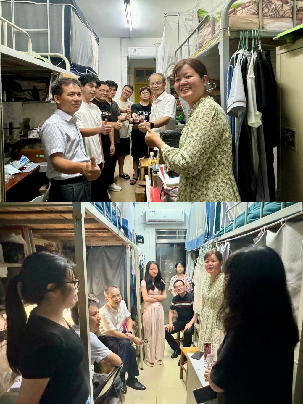 6月19日晚,马克思主义学院党委书记田益民、院长唐少莲、副书记曾小梅、副院长曹晓飞、副院长黎海燕、辅导员肖羽欢深入毕业生宿舍,开展毕业离校教育及走访活动。