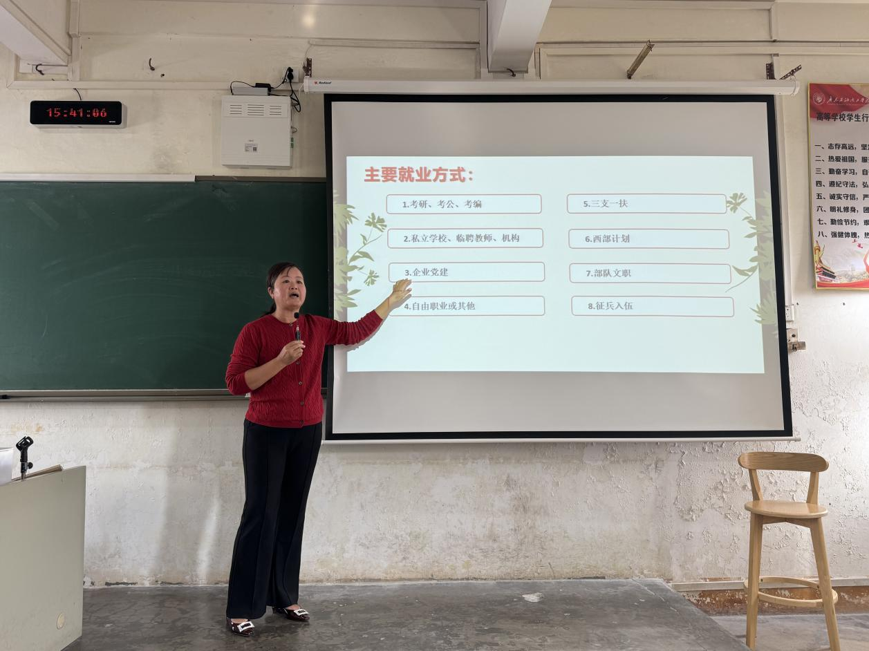 2025年11月5日下午,马克思主义学院在一教西1004教室举办了2026届毕业生就业动员会。学院党委副书记曾小梅主讲,就业辅导员、2022级全体应届毕业生参会。