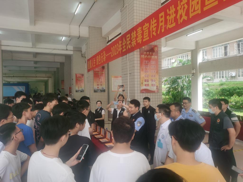 为进一步推进学校毒品预防教育工作,增强师生法制观念,提高识毒、防毒和拒毒的能力,确保校园安全稳定,6月26日上午,广东石油化工学院会同茂名市禁毒委员会办公室、共青团茂名市委员会、茂南区禁毒委员会办公室、茂名市第三人民医院,在官渡校区第二教学楼开展2023年“6·26”国际禁毒日宣传教育活动。学校师生代表共5000多人参加了活动。