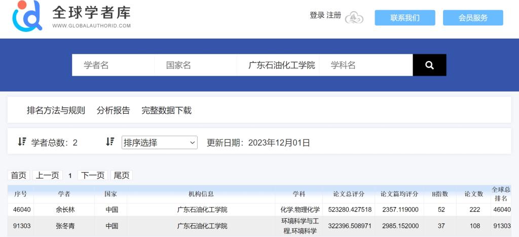 近日,全球学者库网站公布了“2023全球学者学术影响力排名 (终身学术影响力榜)”, 国内共有8029名学者入选,学校余长林教授和张冬青教授分别入选化学学科和环境科学与工程学科终身学术影响力榜。