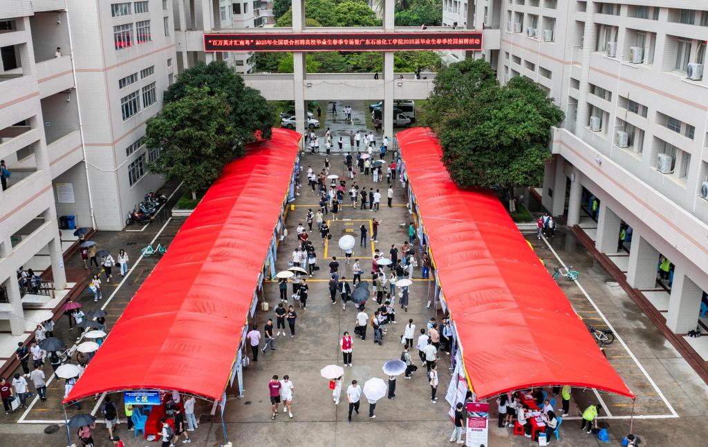 4月25日,广东石油化工学院举办“百万英才汇南粤”2025年全国联合招聘高校毕业生春季专场暨广东石油化工学院2025届毕业生春季校园招聘活动。本次招聘会由茂名市人力资源和社会保障局、广东石油化工学院、共青团茂名市委员会、佛山市-茂名市对口帮扶协作指挥部共同主办。学校党委书记张清华、校长梁浩、党委副书记李为民出席活动,茂名市人社局相关负责同志,企业代表参加了此次活动。