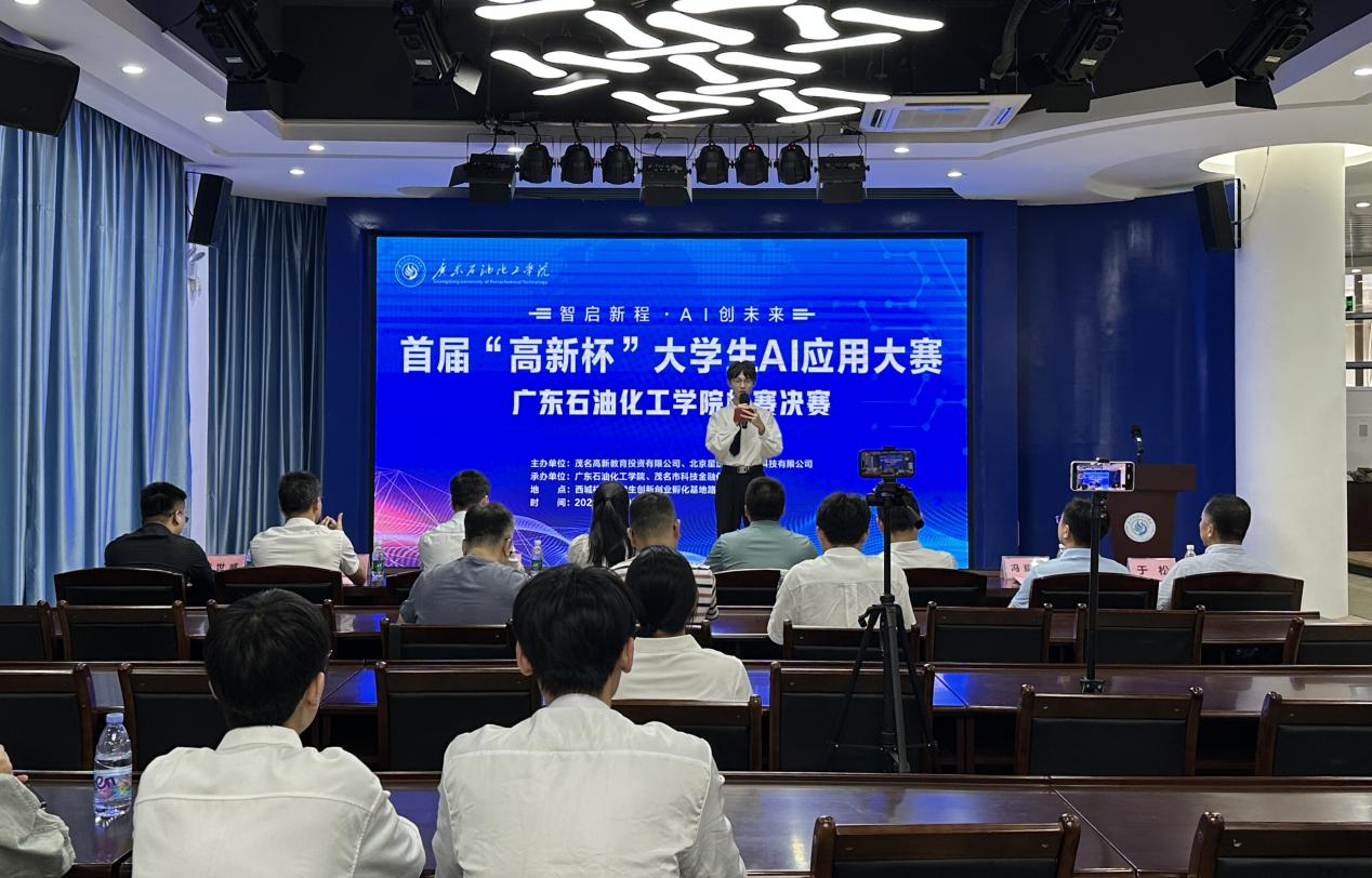 5月10日,广东石油化工学院举行首届“高新杯” 大学生 AI 应用大赛广东石油化工学院校赛决赛。茂名高新教育投资有限公司代表、双创学院、学工部(招就中心)、校团委及发规部(研究生部)负责人出席决赛。比赛采用现场路演、线上直播相结合的形式进行。