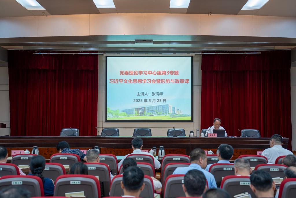 5月23日下午,广东石油化工学院召开党委理论学习中心组学习会,专题学习习近平文化思想。学校党委书记张清华作专题报告。党委理论学习中心组成员出席会议,部分师生参加学习会。