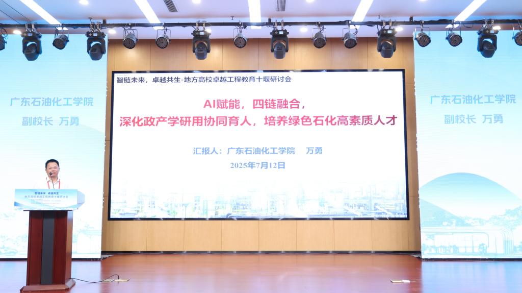 学校党委常委、副校长万勇带队参会,并作题为《AI赋能,四链融合,深化政产学研用协同育人,培养绿色石化高素质人才》的主题报告。报告介绍了我校在推进“AI+”教育教学改革、构建AI教育教学新生态、培养绿色石化领域高素质人才方面的创新举措与显著成效,受到与会专家和同行的高度关注。