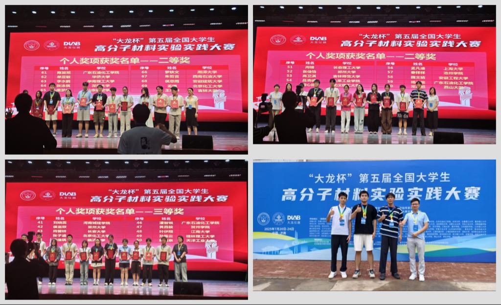 近日,“大龙杯”第五届全国大学生高分子材料实验实践大赛在济南落下帷幕。学校参赛队伍表现优异,杨子龙、陈旨旭两位同学荣获全国二等奖,潘智锐同学获得全国三等奖。