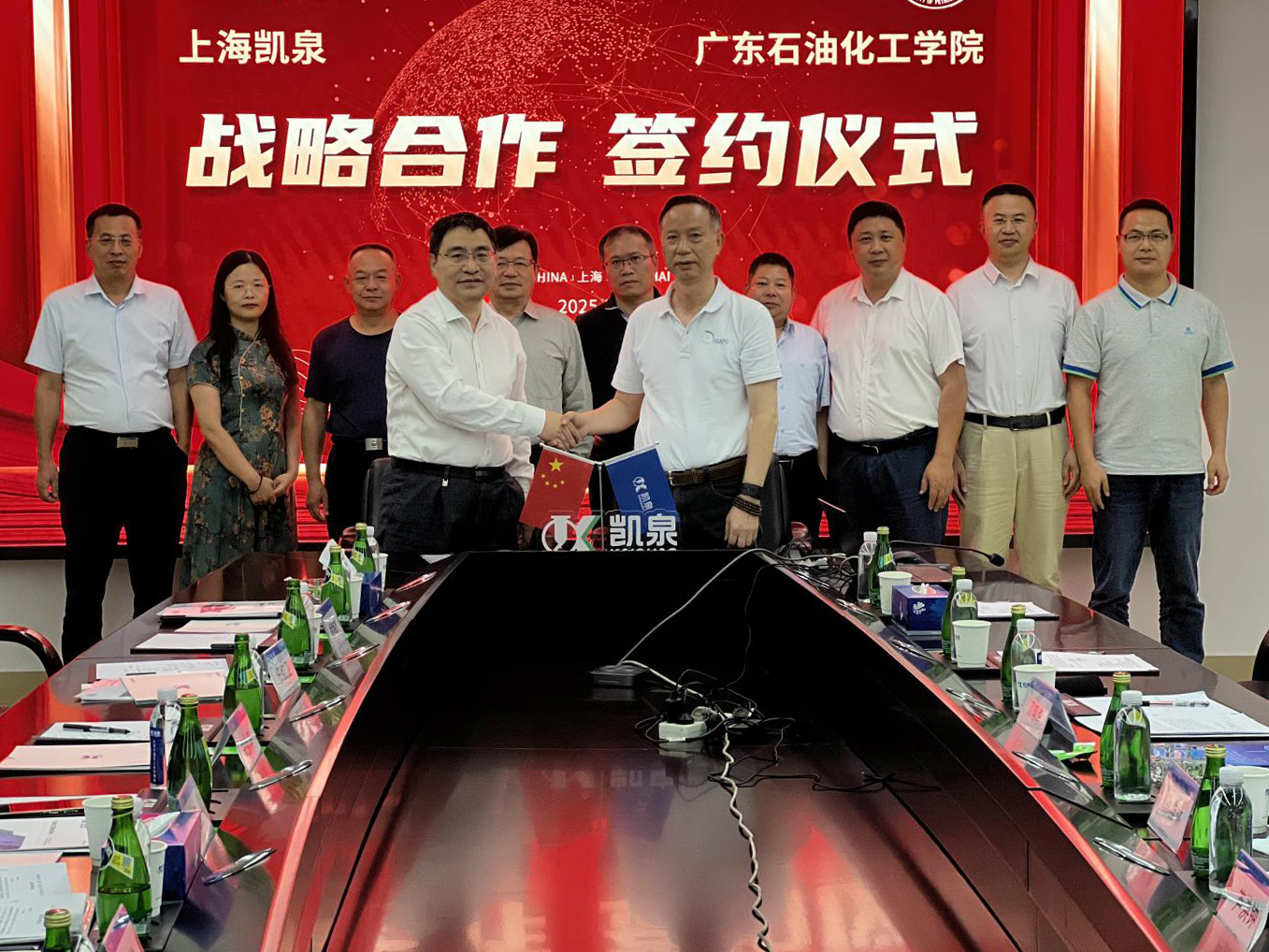 孙国玺表示,学校作为华南地区唯一具有石油化工特色的高校,在能源装备故障诊断、绿色润滑材料等领域具有研究基础,与多家大型企业保持合作关系。凯泉泵业作为国内泵行业的重要企业,技术实力扎实,产业资源丰富。希望双方以此次签约为起点,加强合作,共同推动技术创新。