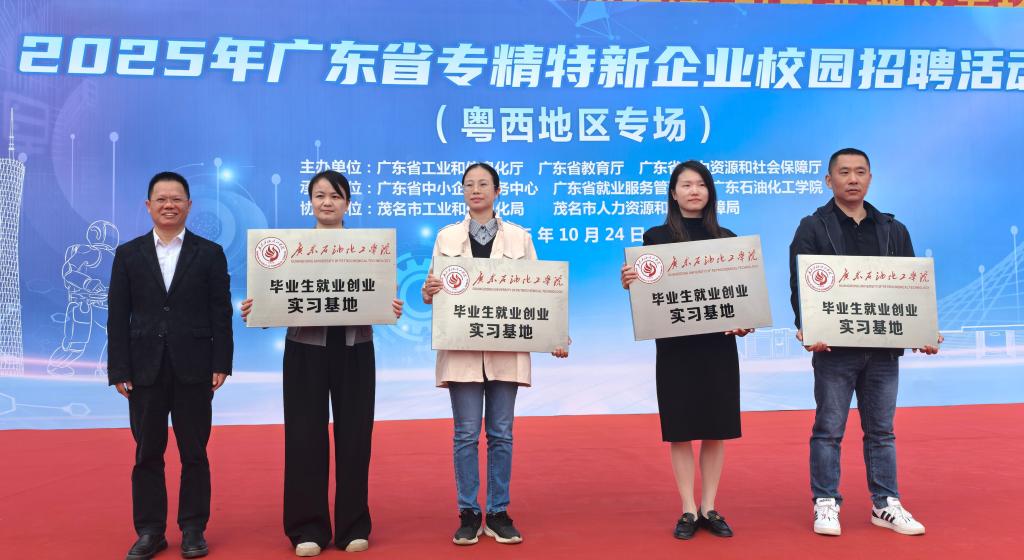 10月24日,由省工业和信息化厅、省教育厅、省人力资源和社会保障厅联合主办,省中小企业服务中心、省就业服务管理局和广东石油化工学院共同承办的2025年首场广东省“专精特新”企业校园招聘活动(粤西地区专场)在广东石油化工学院成功举办。省工业和信息化厅、省教育厅、省人力资源和社会保障厅,茂名市政府、市工信局、市教育局和广东石油化工学院等有关负责同志,以及各地市工信局、人社局负责同志、企业代表约100人参加了启动仪式。