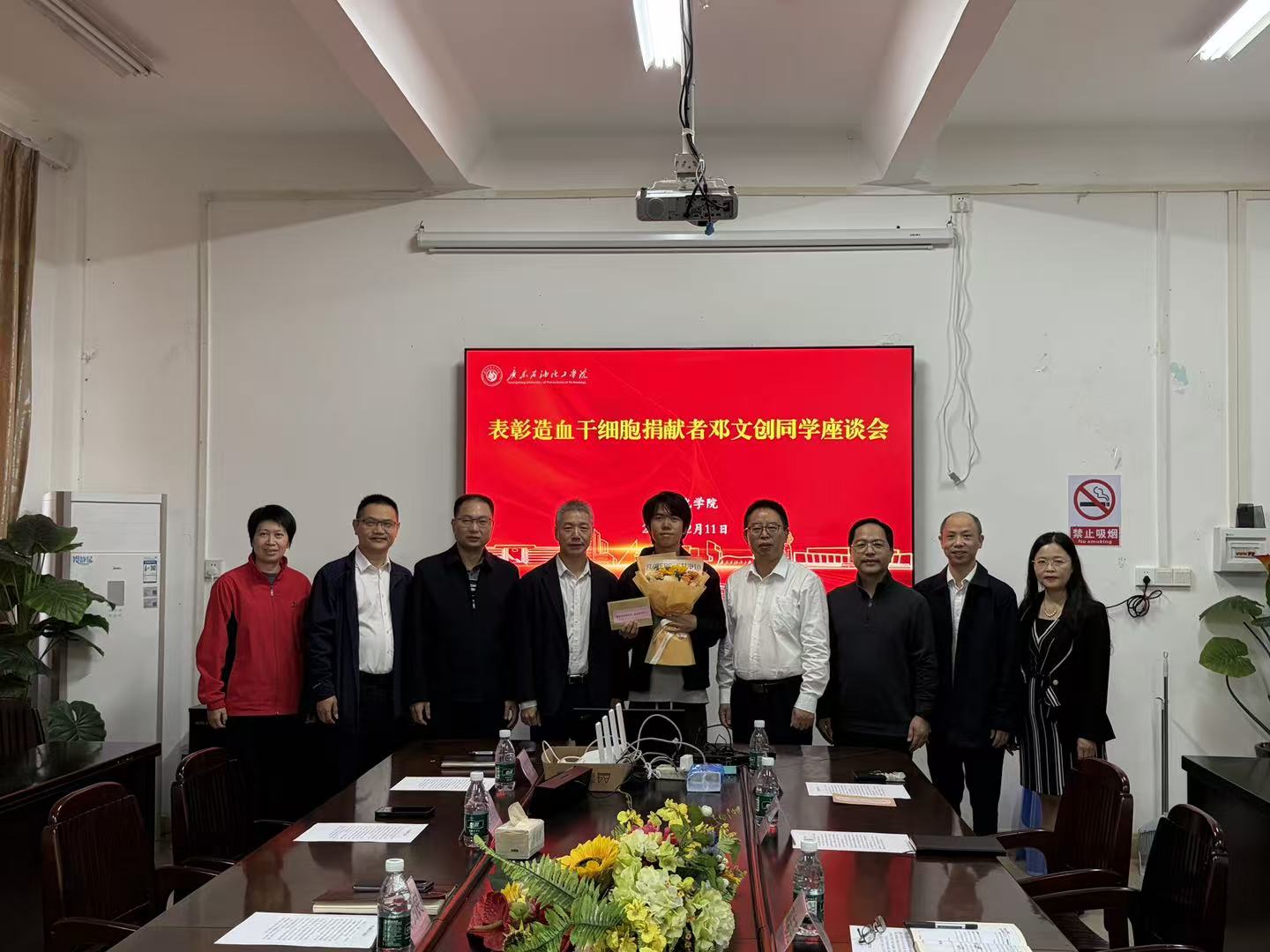 近日,广东石油化工学院自动化学院邓文创同学在南方医科大学珠江医院成功捐献造血干细胞,为患者送去希望。他由此成为茂名市今年第5例成功捐献者。学校党委副书记李为民会同茂名市红十字会党组书记、常务副会长梁华清等一行前往慰问邓文创同学,对其无私善举表达深切关怀与高度赞赏。